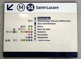 Métro lines are signed throughout the station, as are RER lines at inner city stops. As you approach the platform, you'll need to make sure you know which direction to take. Directions are referred to by the final station on the line (example right), with a list of intermediate stations shown beneath.