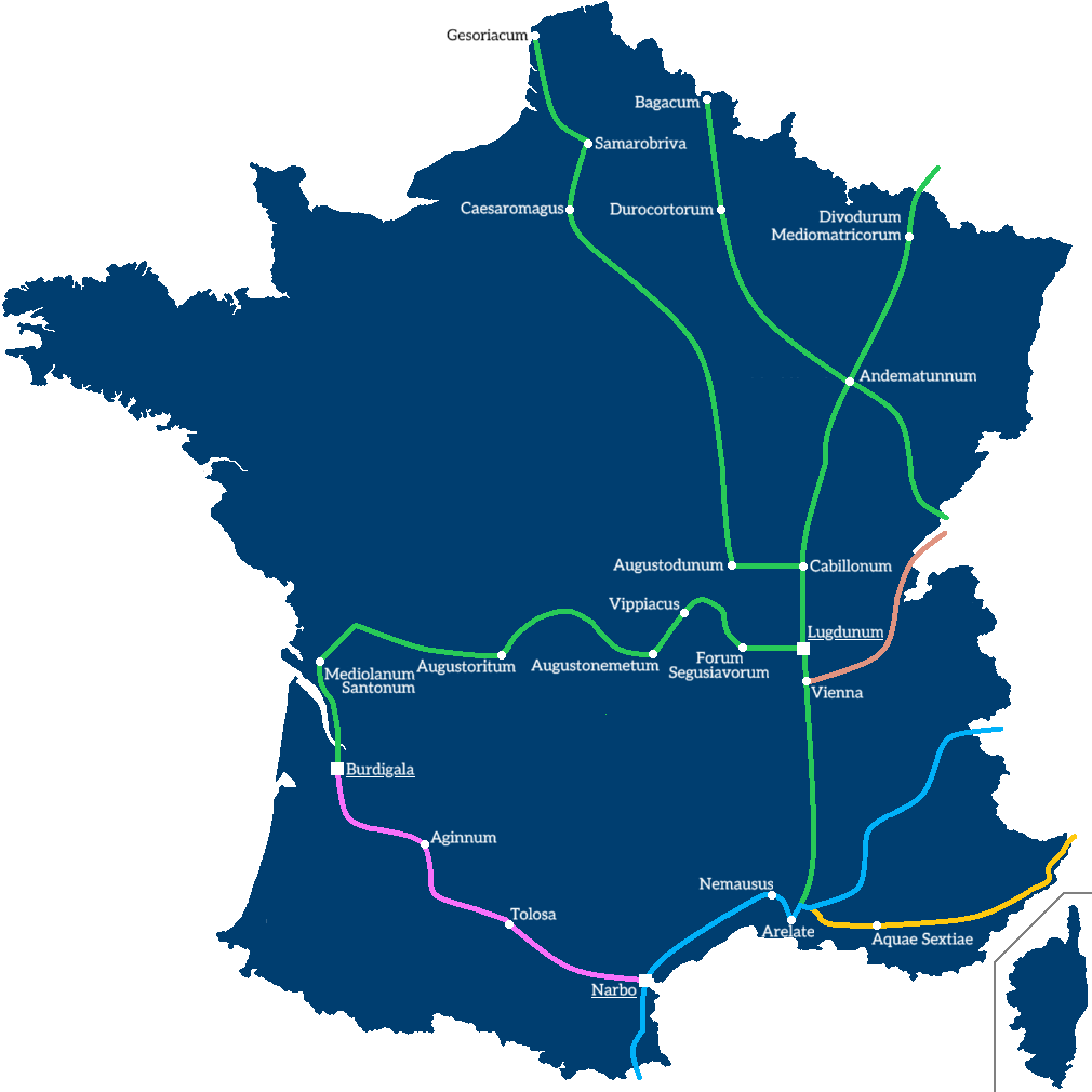 - Arles, connecting with the Via Julia Augusta for Spain and