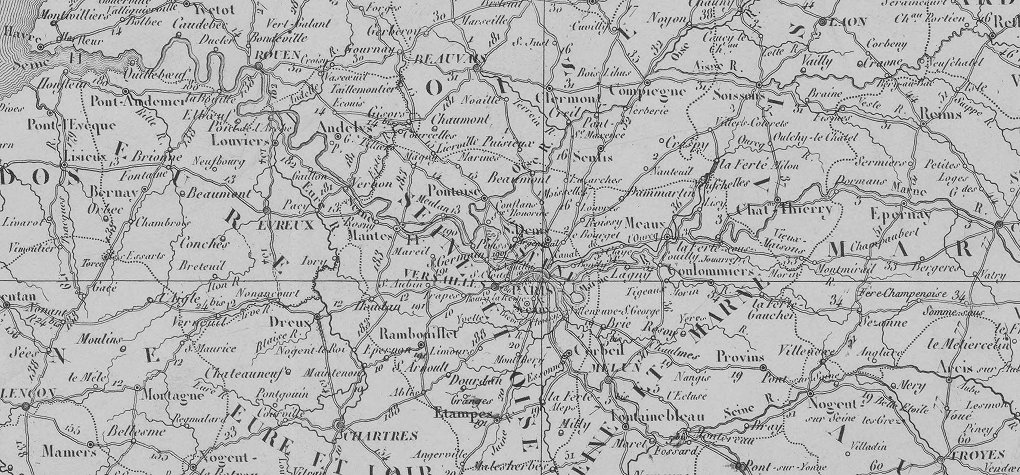 The numbering of the Royales network was adjusted in 1824, to account for both the industrial revolution and because France was somewhat smaller than under the Empire - 46 Imperiales were now located wholly outside of France, whose borders were restored to those prior to 1792.