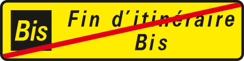 | Signage at the start of a Bis route | End of Bis route signage |