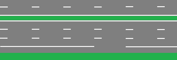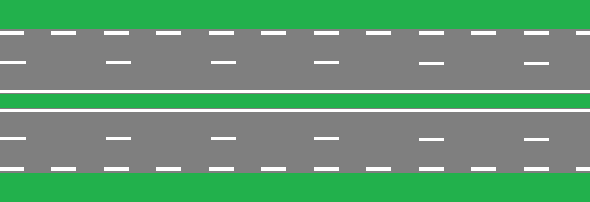 Central median strip On some single carriageway roads, a central median strip may be created to physically separate the directions of traffic in the same manner as a standard central reservation. A solid line is painted on either side of the median to enforce that overtaking is prohibited. |