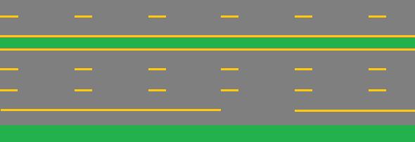 Temporary lines Road layouts through roadworks are denoted by the presence of yellow lines. |