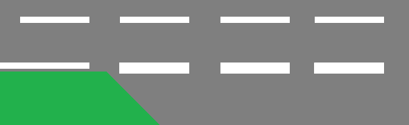 Entry / exit line Line denoting a slip road entering or exiting the carriageway. This line is also used to denote the end of a lane where traffic needs to merge into an adjacent lane instead. |