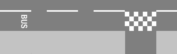 lane Dedicated bus lanes are indicated on the ground by longer dashed lines. Where they cross an intersection, the lane is marked by a chequerboard - this is the only point in which general traffic can cross the bus lane. On some roads, bus lanes may operate against the general flow of traffic. |