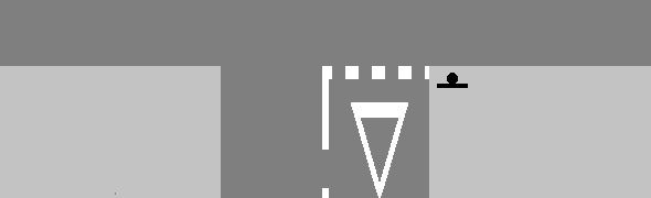 Dashed stop line Denotes the requirement to give way to traffic on a priority road, and is accompanied by the inverted triangle symbol on the road. This line (without the triangle) is also used at traffic signals to denote the point where vehicles should not pass if a red signal is displayed. |