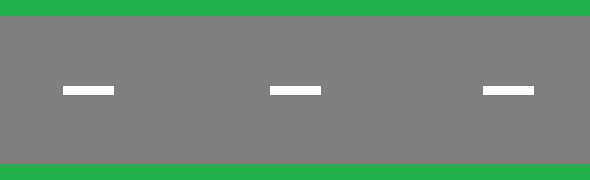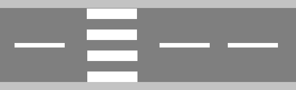 Guide lines Regular road markings, indicating the centre of the road on a single-carriageway route or the divide between lanes on a one-way or dual carriageway road. Overtaking is permitted. The length of lines (and the gap between them) may be doubled on faster roads. |